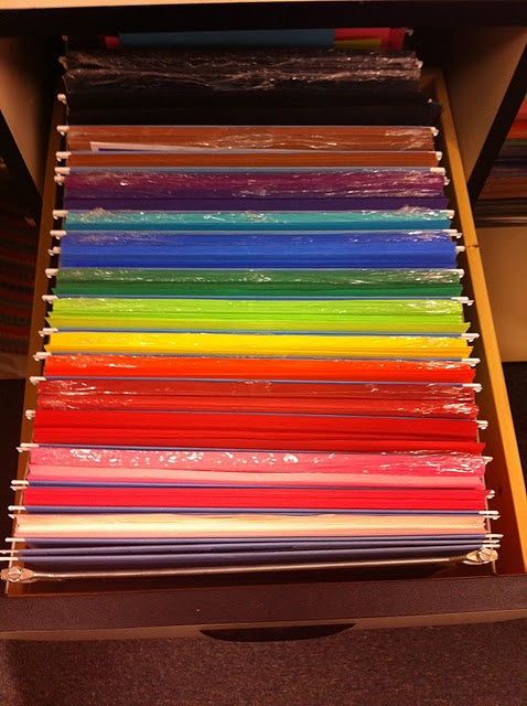 As a student teacher, I saw another teacher do this and immediately knew I was going to steal the idea. Use the bottom drawer of a file cabinet or a file box to organize construction paper by color. No more mess when students try to pull a specific color out of a pile. You can also quickly see when you are out of a certain color. This example is from Two Things in Common, http://twothingsincommon.blogspot.ca/2011/01/teacher-tips-on-snow-day.html.