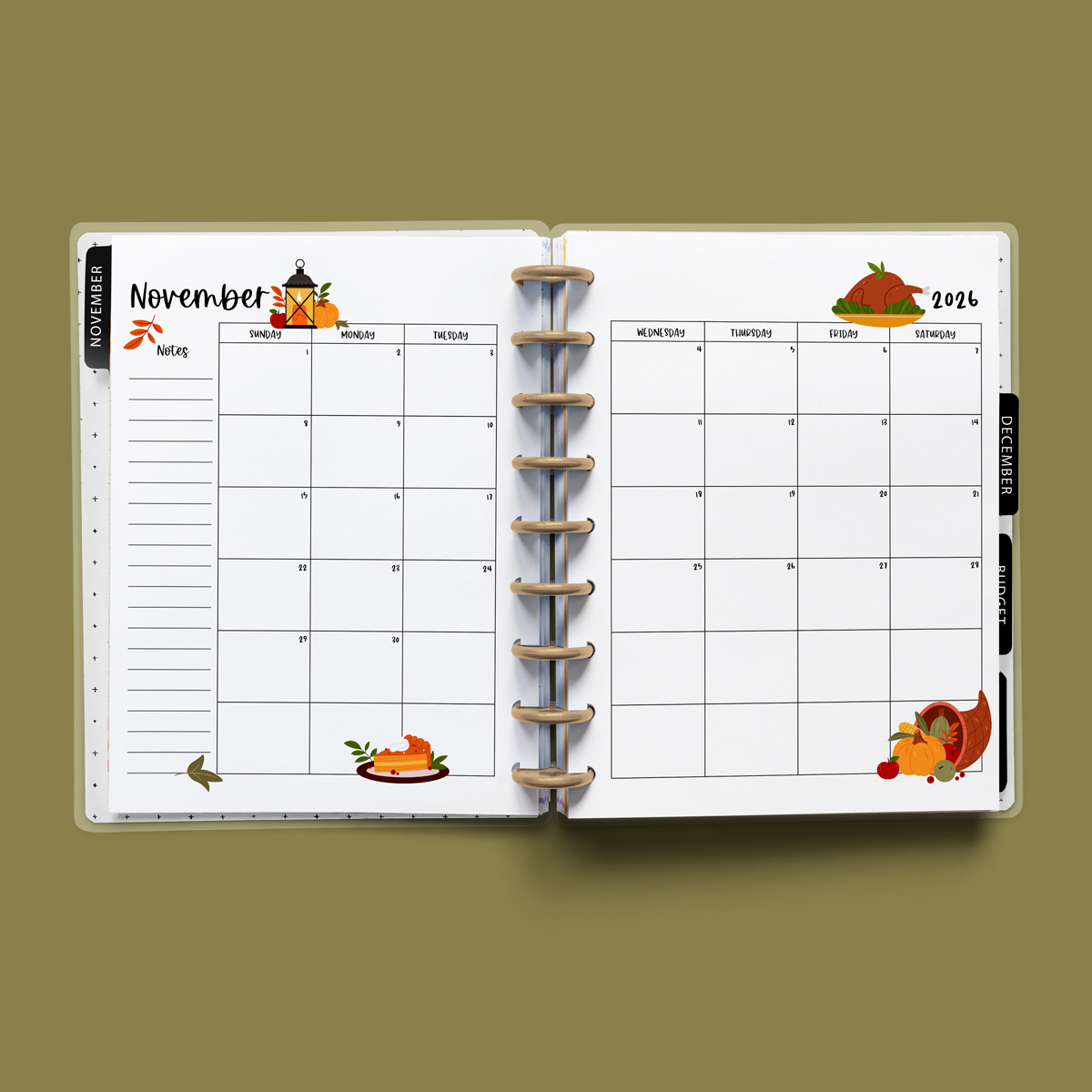 I want to say THANK YOU for the great job you do with the clipart seasonal 2 page calendars!! I wait and watch for these each year since I found you. I use them with my big Happy Planner accessories. Thank you for sharing these and your talent with us!