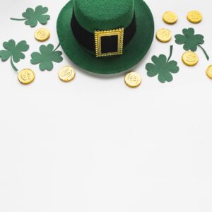 Home » Freebies » 2026 & 2025 Free Printable Monthly Calendar with Holidayshigh-angle-clovers-hat-coins