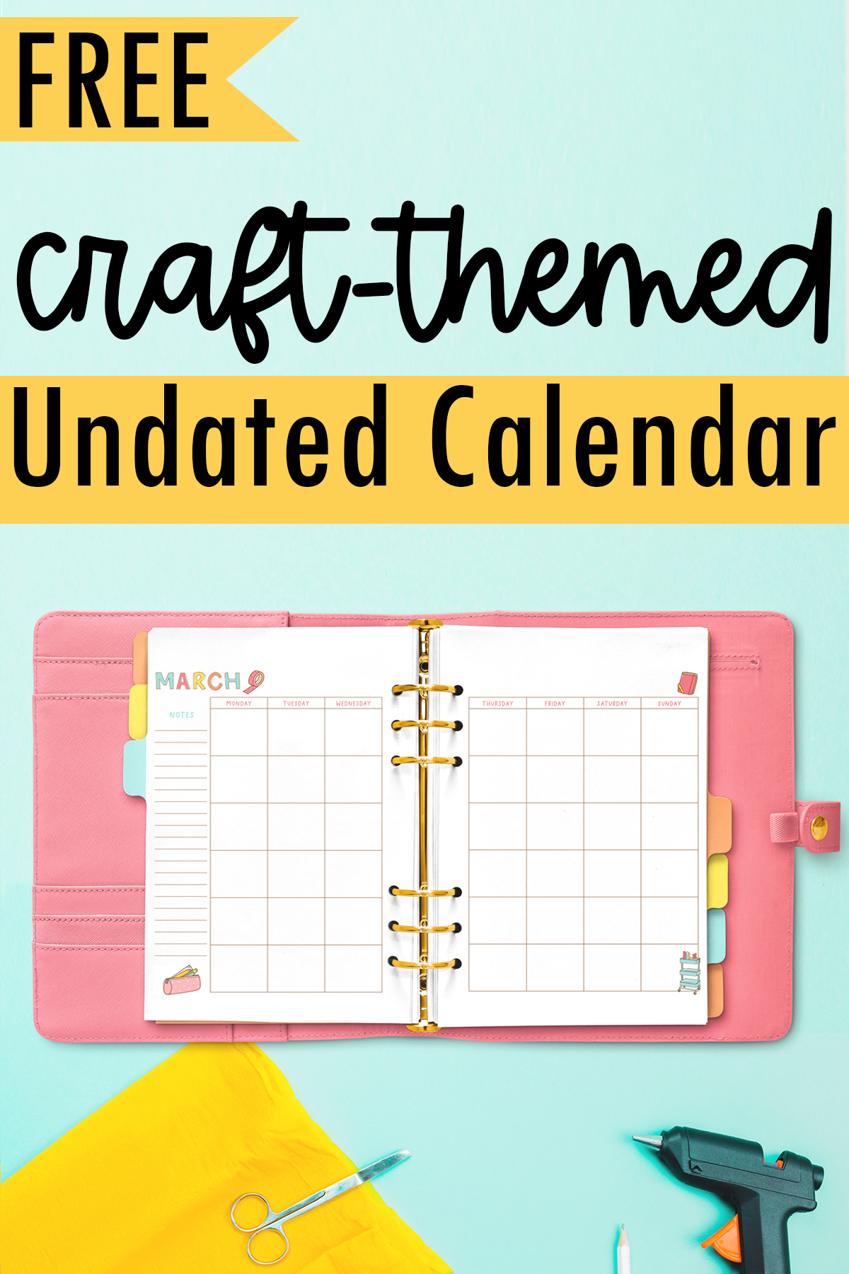 Free Undated Craft Themed Monthly Calendar Printable