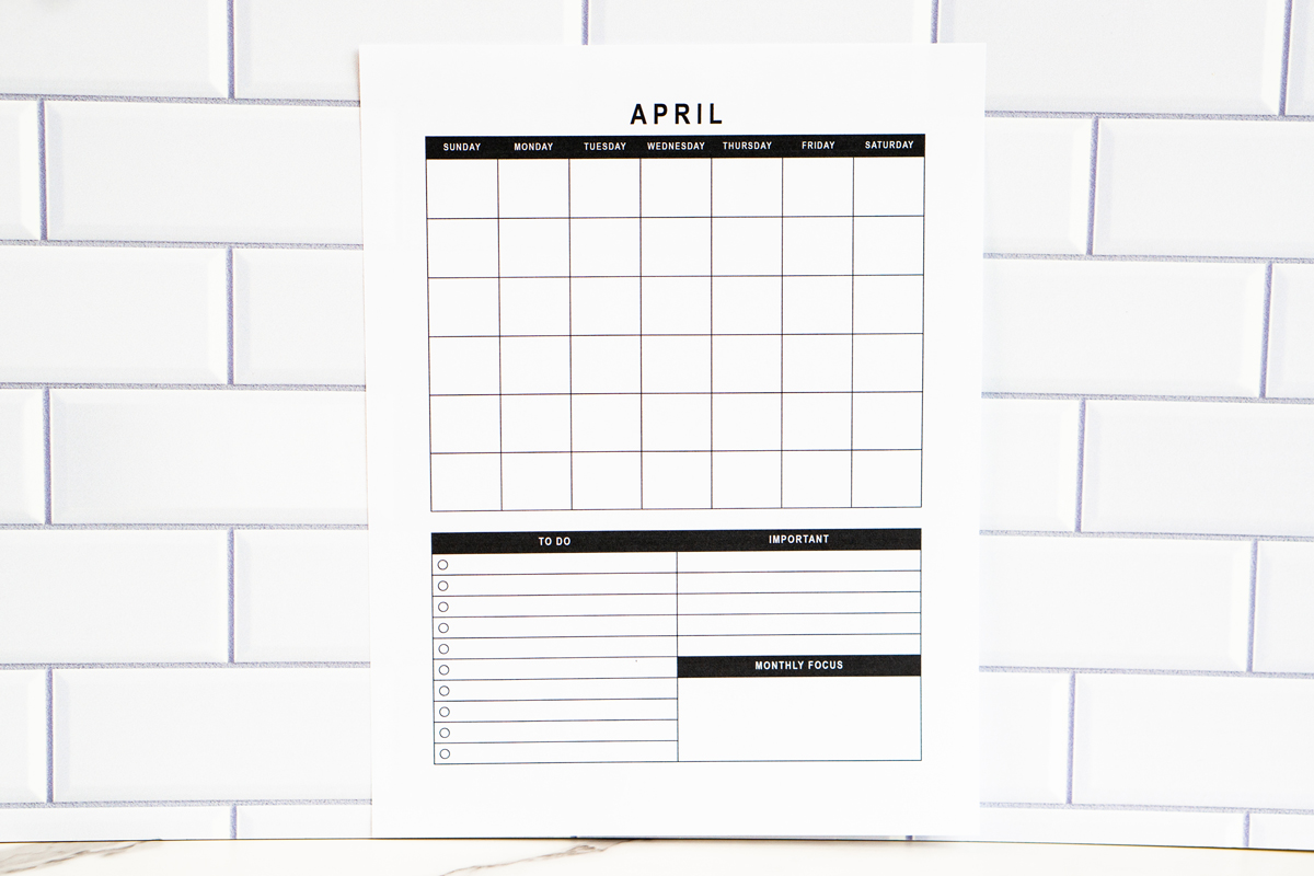 Free Undated Single Page Monthly Calendars | PDF & PNGs
