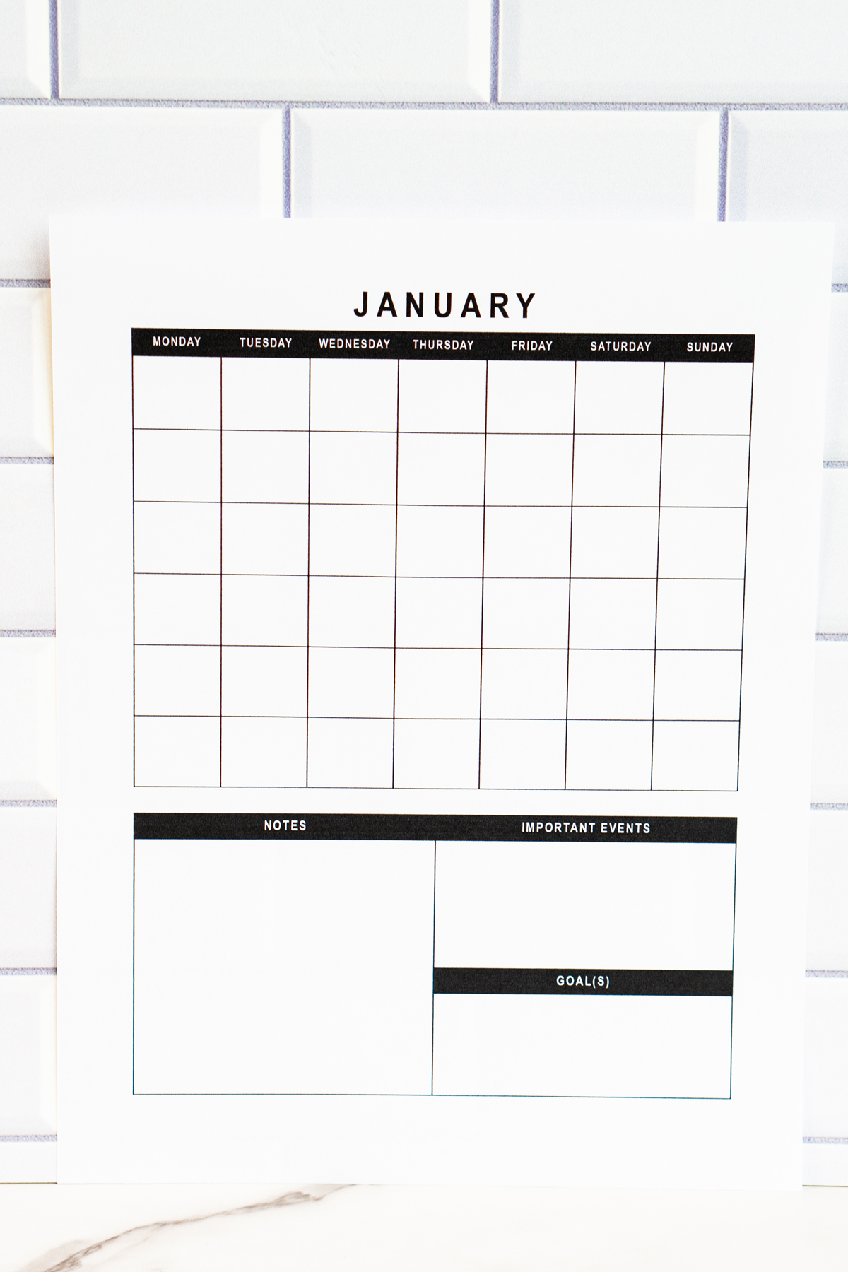 Free Undated Single Page Monthly Calendars | PDF & PNGs