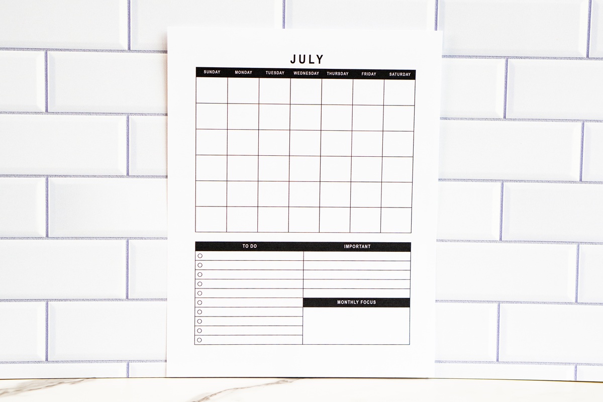 Free Undated Single Page Monthly Calendars | PDF & PNGs