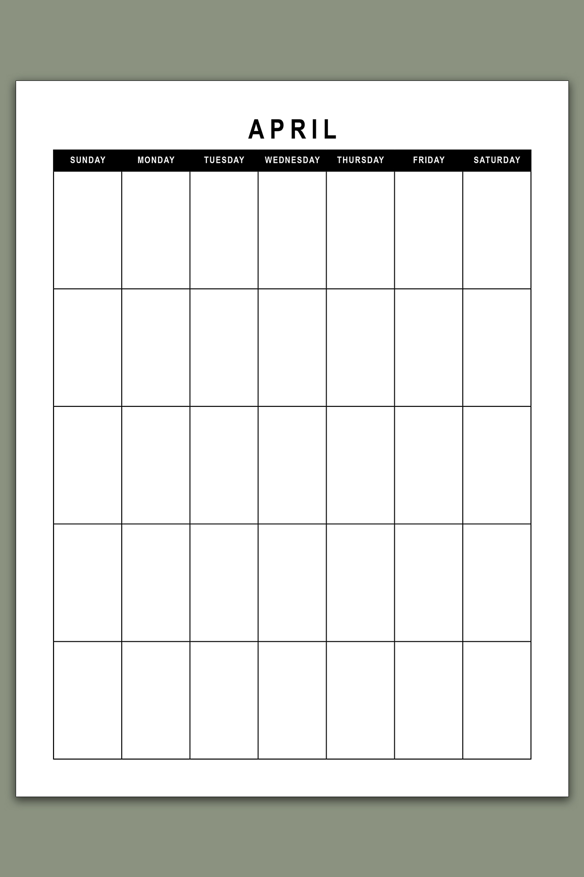 Free Undated Single Page Monthly Calendars | PDF & PNGs