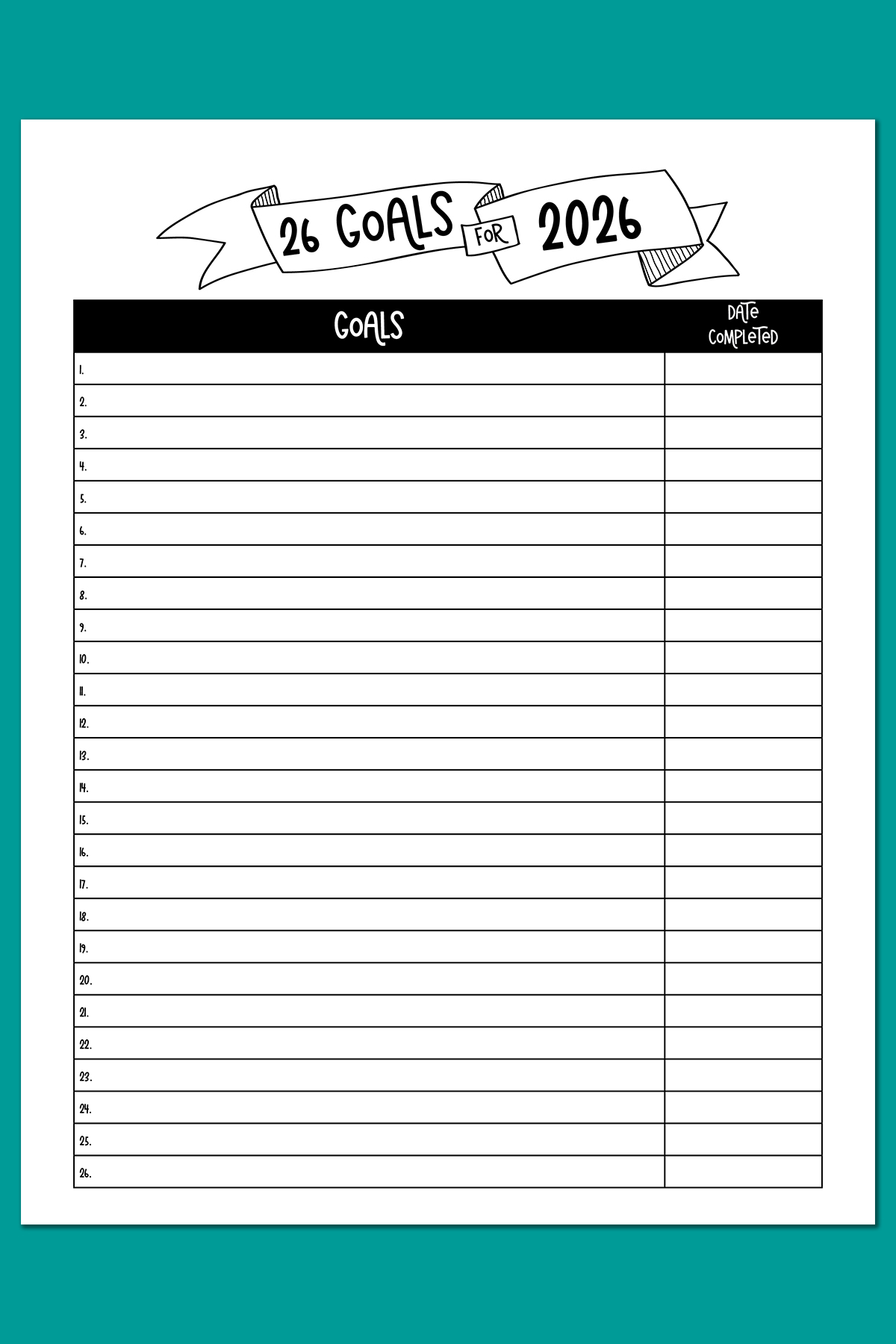 26 Yearly Goals & Adventures for 2026 Printable